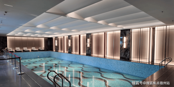 约1500㎡的私享会所, 包含恒温泳池、健身房、瑜伽室,儿童空间、阅览室、棋牌室等功能,尤其是泳池用黑色大理石做背景,看下来确实很有高端度假氛围。