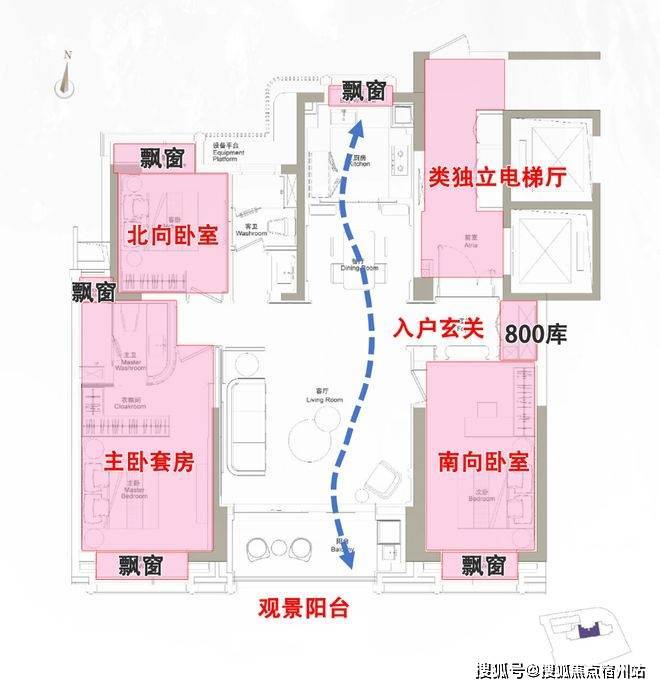 近全飘窗设计,扩展了生活的尺度感;主卧豪华套房设计,兼顾私密性与居住舒适度!