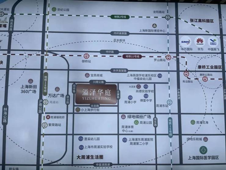 区位方面,溢泽华庭位于浦东周浦板块,与18号线周浦站直线距离约1.4公里,可以通过共享单车或公交车接驳。