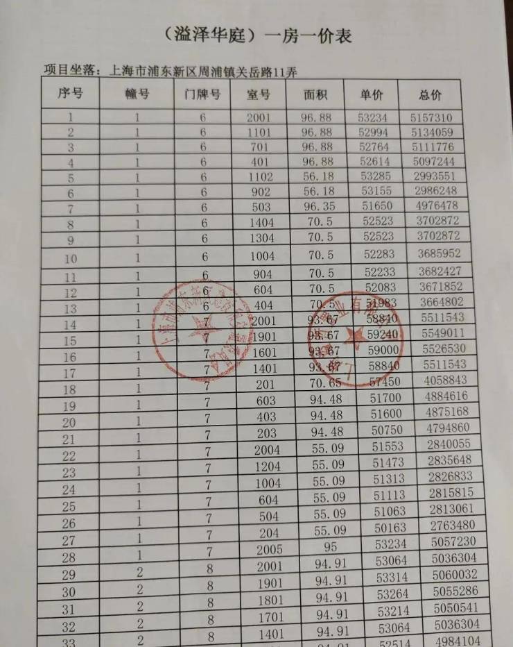最后,附上完整一房一价表: