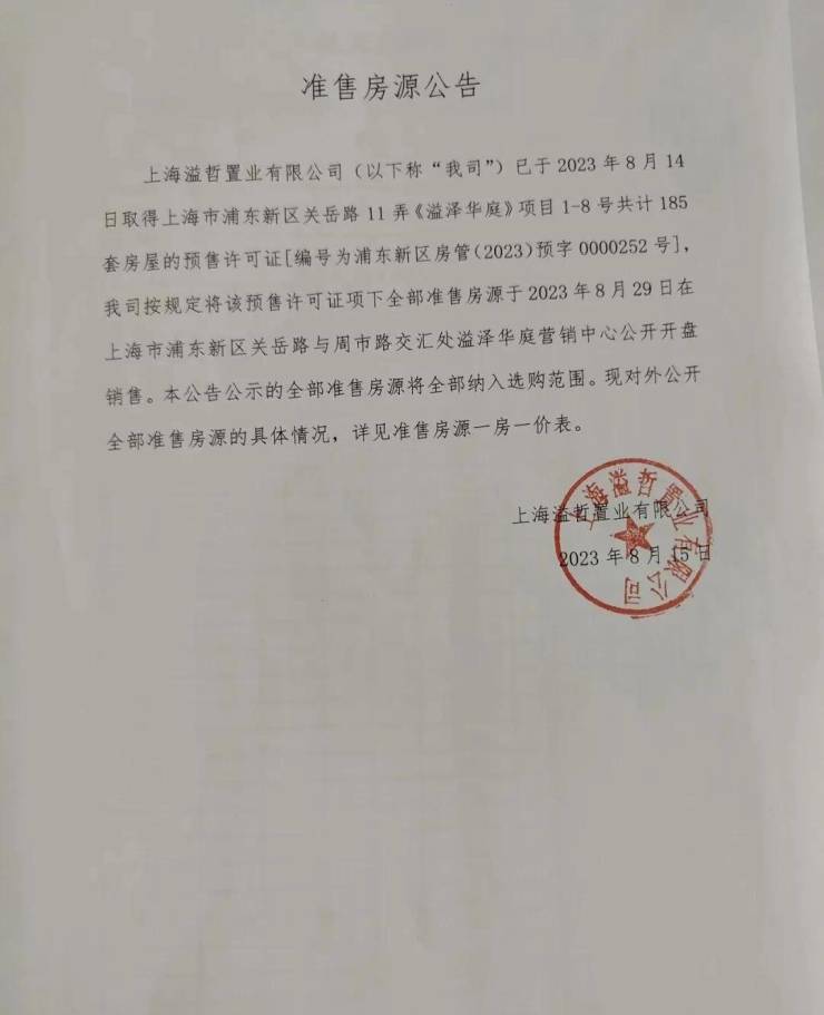 开发商品牌:上海溢哲置业有限公司