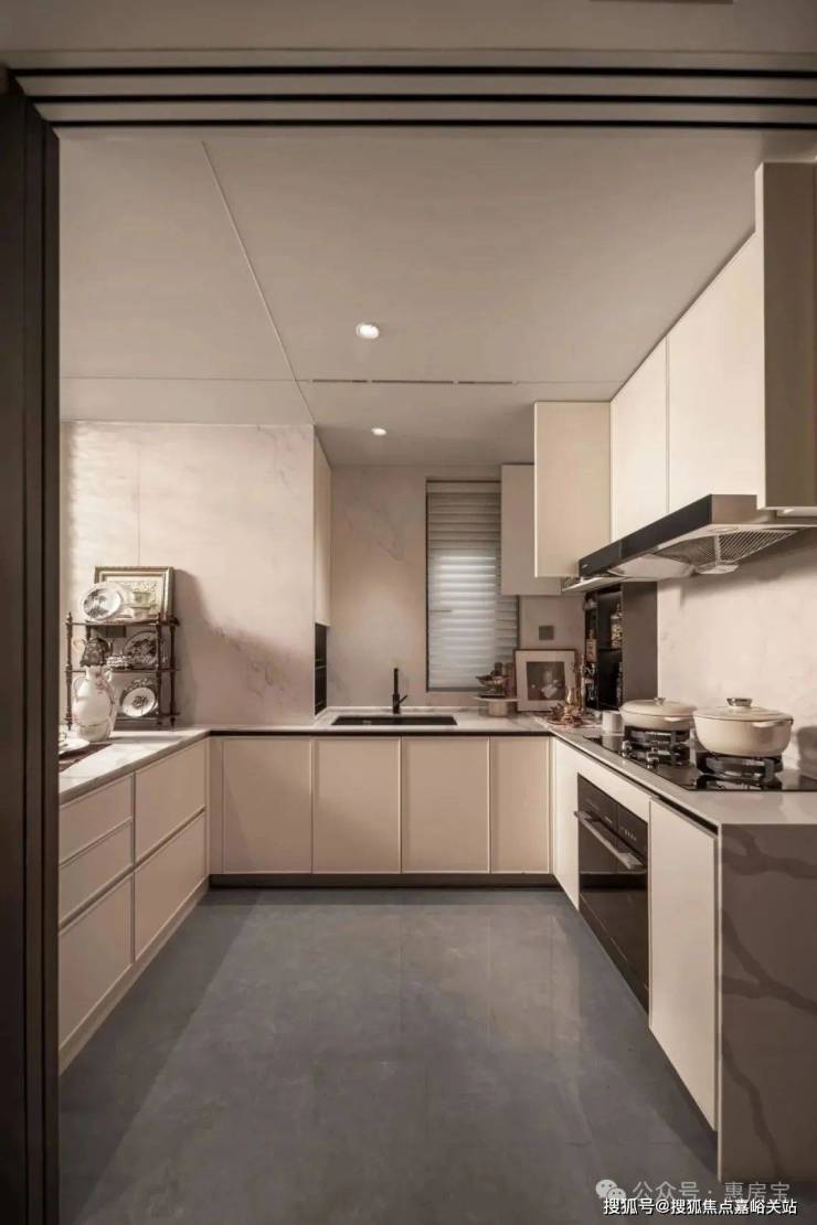 厨房更是收纳主场,设置了多功能调味拉篮、定制谷物抽屉,让瓶罐各归其位,烹饪时少了琐碎,多了诗意。