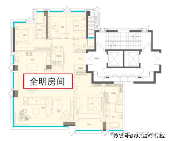 ② 全明房间, 超大外窗, 超高的窗地比,极致的采光效果。通风表现非常好,户型方正,南北通透。