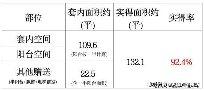 建面约143平四房阳台附赠更大、门口的私家电梯厅预测能有9-9.5个平方的附赠;如果都加在一起,实得率超92%,实际可利用面积超过132平!