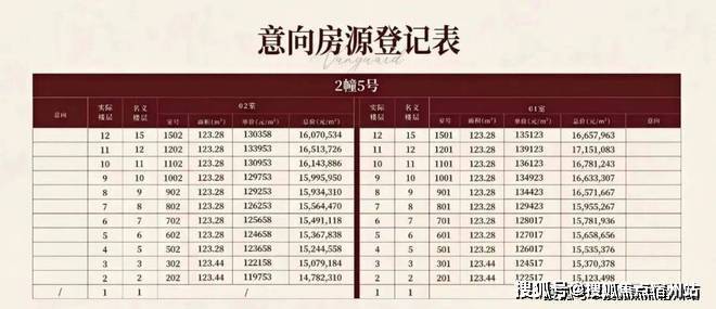 上期一房一价表: