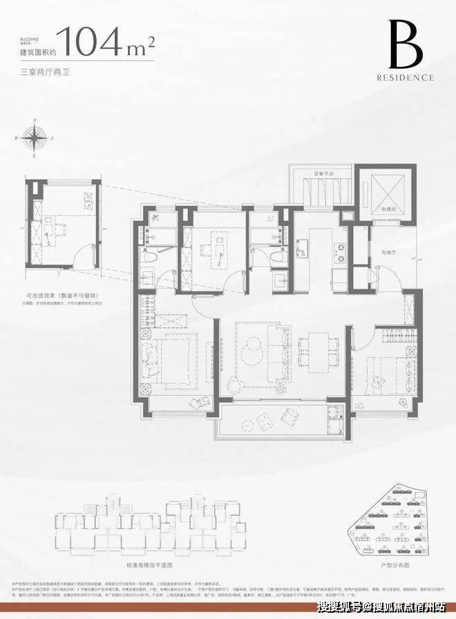 建面约104㎡的三房两卫,百平米大横厅,✅✅招商中旅·揽阅售楼处电话:400 - 8824 - 258✅✅更在南向尺度感和采光通透度上达到了极致。