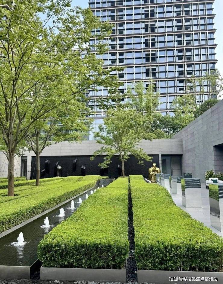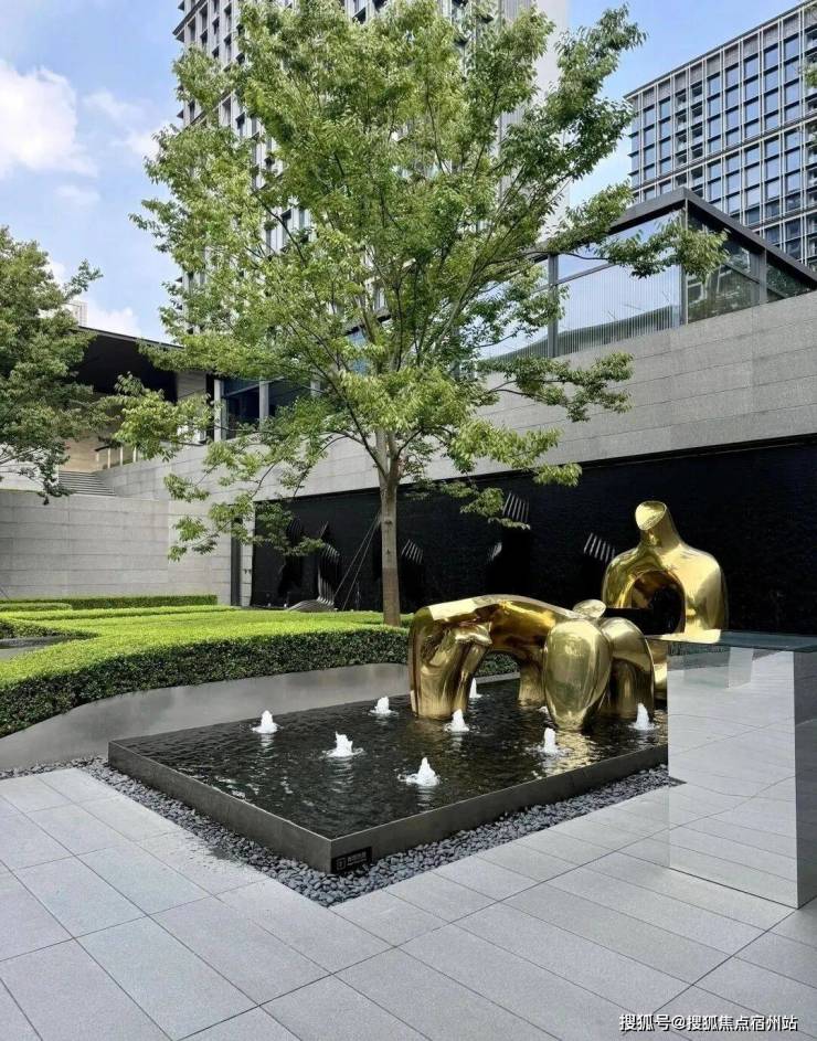 下沉式庭院,拥有水系景观、沙发休息区域,还有摇曳身姿的榉树,水与光、树与影,都将在四时光影的变换中绚丽呈现。