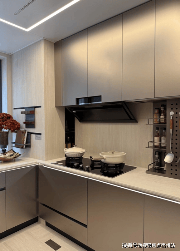 厨房墙面采用大块岩板, 更容易清洗油污;