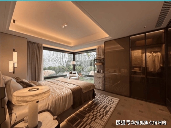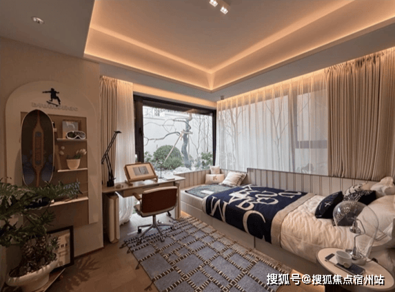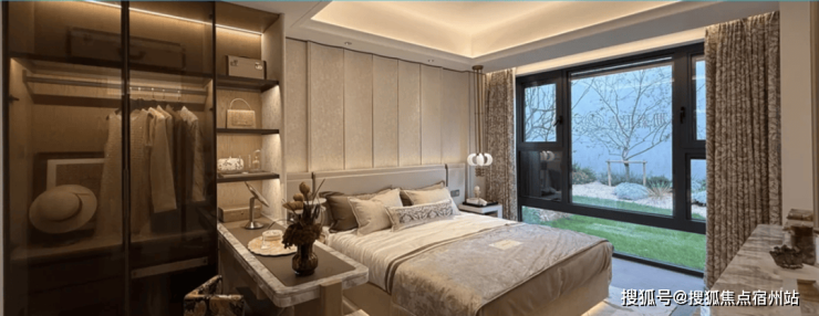 样板间卧室展示为飘窗改造后的效果,实际交付为飘窗合面,但南向次卧的阳合以及花池是改造成完整的卧室进行交付的!