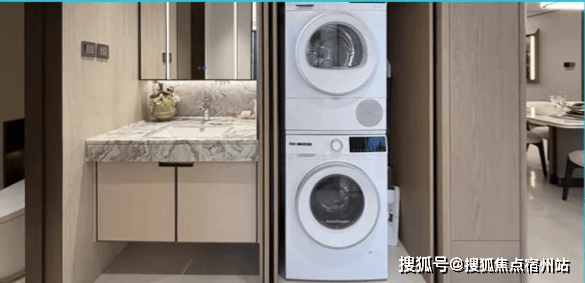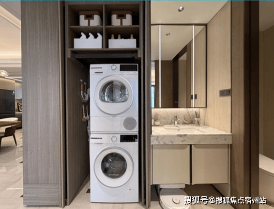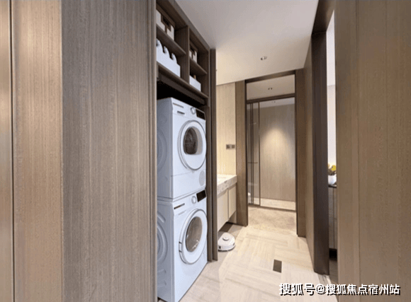 次卫采用四段式布局,设置独立家政间,并且洗衣机和烘干机同样也是交付标准(博世或同等品牌)!