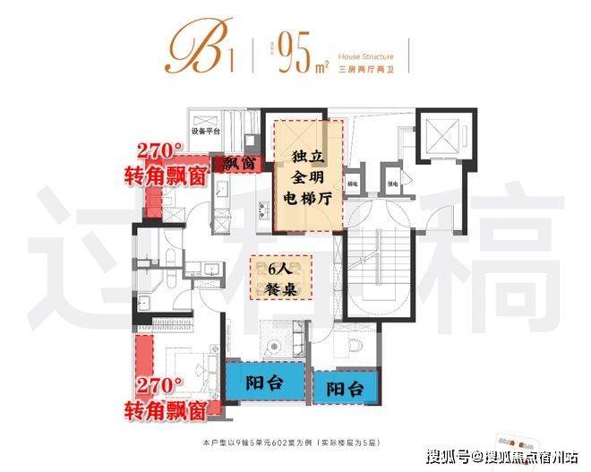 在建面约95㎡的3房中,与建面108㎡户型在设计理念上有许多的共通之处。