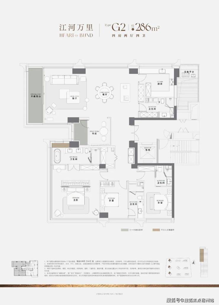 在户型设计上,项目在各个面积段积极创新, 以270°全景视野、大面宽阳台等设计,打造黄浦江上惟一能够 拥揽江景的全景舱,收藏S湾心的落日余晖;框筒结构设计,保证最大化观景视野,并为户型的成长和可变提供空间。