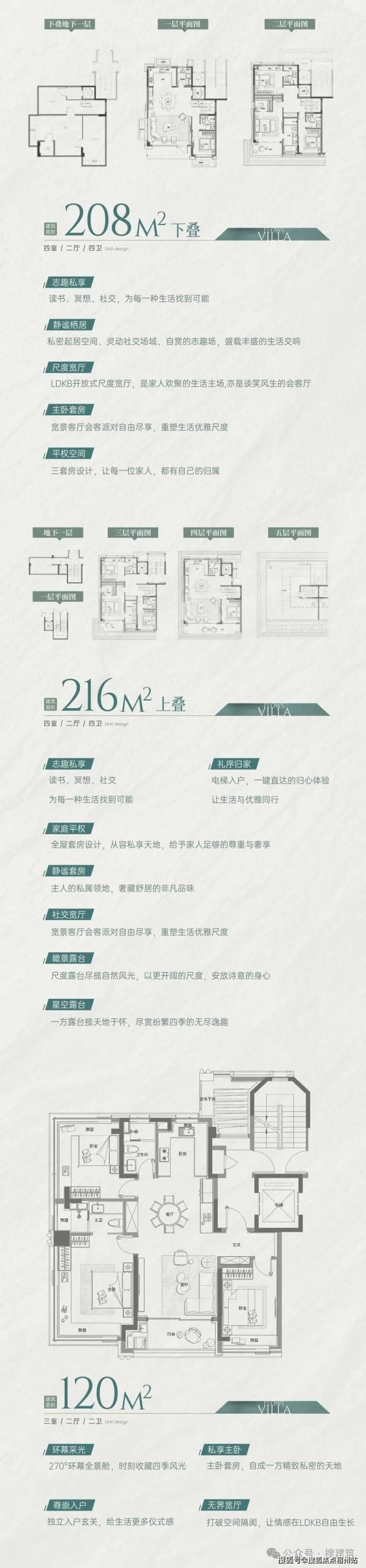 地块2.0的容积率,规划了小高层+叠拼的业态组合,东西分区,各自形成组团,西高东低,与东侧绿地共融。内部打造了 南北向中央景观轴+下沉庭院景观核心,结合下沉庭院和架空会所,营造步移景异,层层递进的沉浸式归家体验。搜建筑