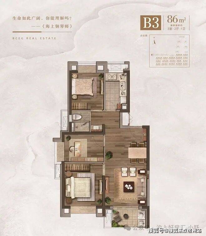 2.重要的是功能性还很到位,86平就做到3房,对小夫妻或者小太阳家庭,保证未来5-10年居住不落伍。