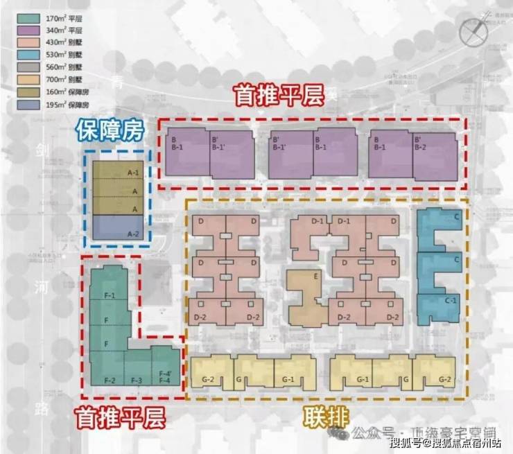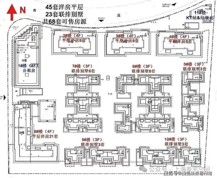 项目规划由5幢4层平层公寓、5幢3层联排别墅及1幢保障房组成。平层公寓面积段为134-350㎡、合计有45套,联排面积段为410㎡、430㎡、540㎡、560㎡、690㎡,合计有23套。