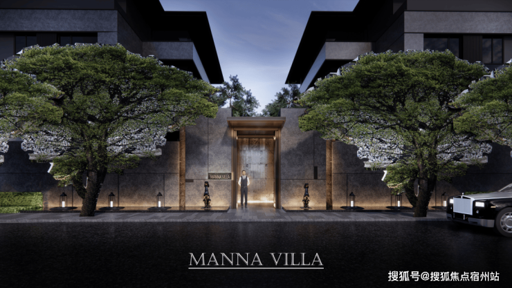 经典三段式别墅立面及大窗墙比,实现居住与自然的延伸;中灰色石材为基座,奢石宁静与土地矜贵互为映衬。中灰色石材的厚重感,深灰色铝板的舒展度,“安缦金”高奢质感勾勒边框,与蓝眼睛光面石砖、冰花蓝光面石材的交织下,呈现出“天光云影”的意境。