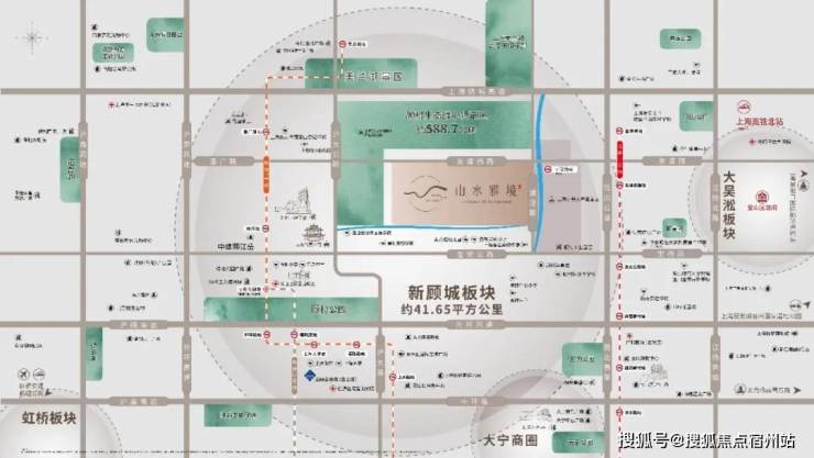 距离1号线宝安公路站直线距离约3.4km,距离7号线+15号线顾村公园站直线距离约3.3km,更多依靠公交车或班车服务(看开发商后期是否开通)接驳。