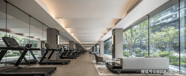 3、搭载大落地窗环模设计的健身房, 在欣赏窗外景色的同时,高端的健身器材,丰富的健身配套,都可以满足业主日常的健康所需。