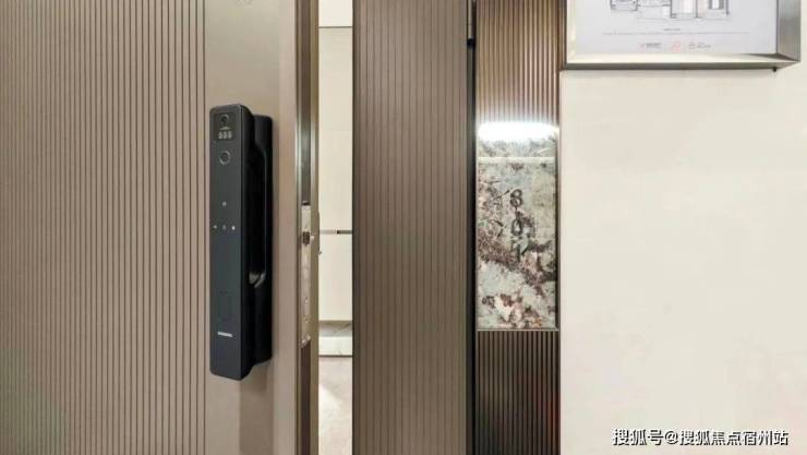 尚未入户,自带猫眼的四合一智能门锁, 配合定制的门牌号与logo集合而成的入户门,彰显着主人的品位与尊贵地位。