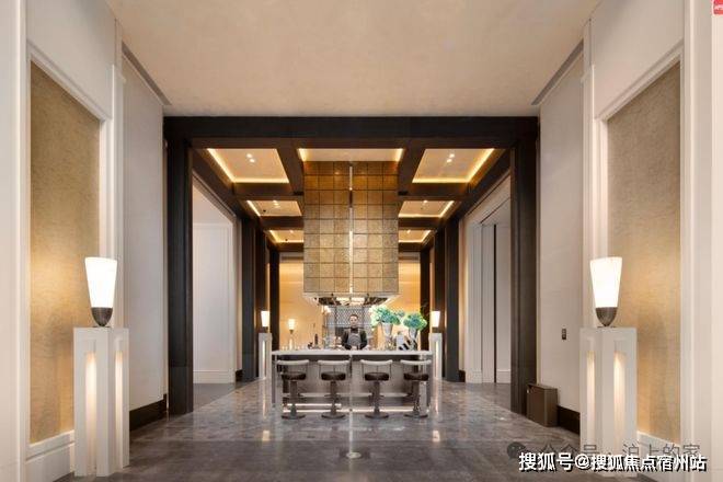 建面约190㎡ C户型,两梯两户,私享梯厅,家的玄关尺度,延伸至电梯厅,增加实际使用面积。入户处大师定制瓷板门牌画,私属感满满,打造专属归家仪制。