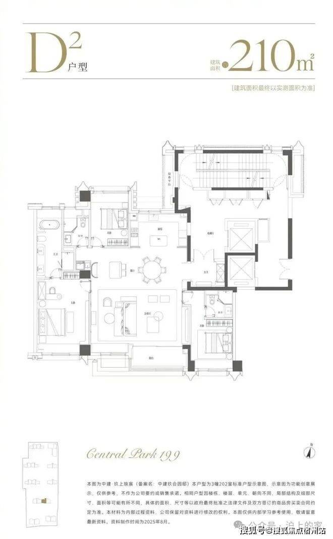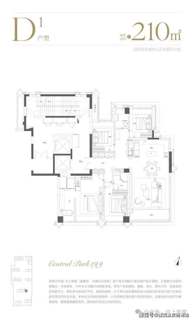 建面约210㎡,分为中间套与边套产品: