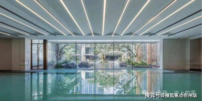 巨型超白玻璃墙,与下沉庭院风景无界链 接,让会所融入叠瀑翠谷之中,而这种巨幅超白玻,采用的是苹果旗舰店同款。