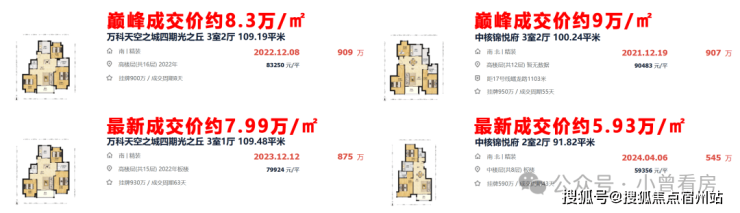然而同区域地段更好的中核锦悦府, 巅峰成交价超过9万/㎡,如今最新数据中有一套中楼层房源5.9万/㎡成交 ,对比初始约6万/㎡新房均价,甚至已经 “破发”!