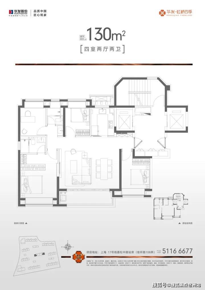 (样板房免责:创意样板房实拍图,旨在对样板房大概布局进行示意,效果图与实际情况存在一定差异,具体以最终实际交付效果为准,家私、家电等软装并非交付标准,亦不作为开发商的销售承诺。) 华发虹桥四季售楼处电话:400-8894-638